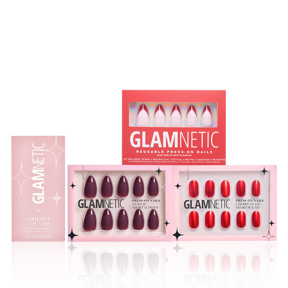 Apply an even layer of glue to natural nails and back of Glamnetic nails. -