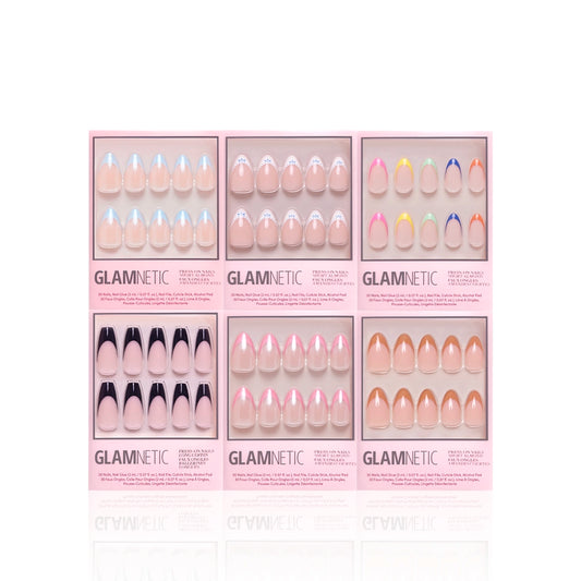 The glamnetic Harry Potter™ x Glamnetic Collection includes ten almond nails, each with magical manicure designs inspired by Dementor, Unicorn Blood, Godric Gryffindor, Mandrake, and other iconic wizarding world themes.The Harry Potter™ x Glamnetic Collection by glamnetic features twelve almond nails, each with enchanting designs inspired by Harry Potter themes and houses—perfect for creating a spellbinding manicure.