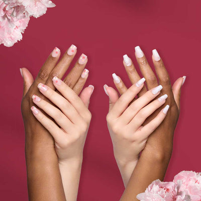 True love is only a 5 minute mani away with Love In Bloom. Feel the romance with 15 press-on nails made for the season of love. Mingle with floral patterns, delicate heart accents, and details in soft pink, dreamy neutrals, and passionate reds. Whether you're glamming up for date night, bridal showers, or just a romantic at heart, Love In Bloom is perfect for celebrating love all year round.