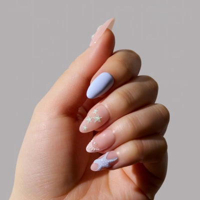 Fresh from the ocean, the Salty Waves Press-On Nail Set delivers sea-kissed nail art in 5 easy minutes. These short almond nails are designed with a mix of ocean-themed motifs — ranging from pastel blue and soft green solid shades to 3D seashells and dainty pearl accents. Long-lasting and durable, they’re ready to make waves whether you’re in the water or on land.