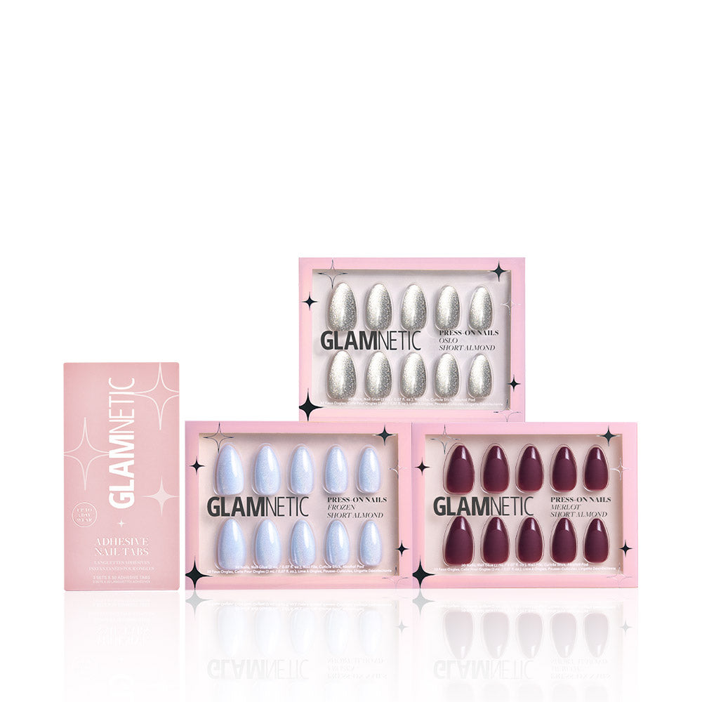 Apply an even layer of glue to natural nails and back of Glamnetic nails. -